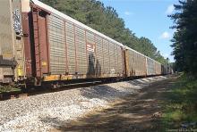 UP AC4400CWCTE 5942 and C41-8W 9486 rush a line of autoracks, including TTGX 981706, northbound at mile 832 in Tyrone, GA on May 16, 2014.