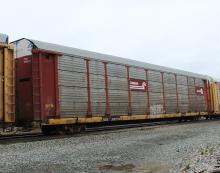 TTGX 982505 is seen in the consist of CSX Q226-26 at Elsmere, DE on 4/29/16. Rack number is CR 9771, built 10-93 and is now owned by NS.