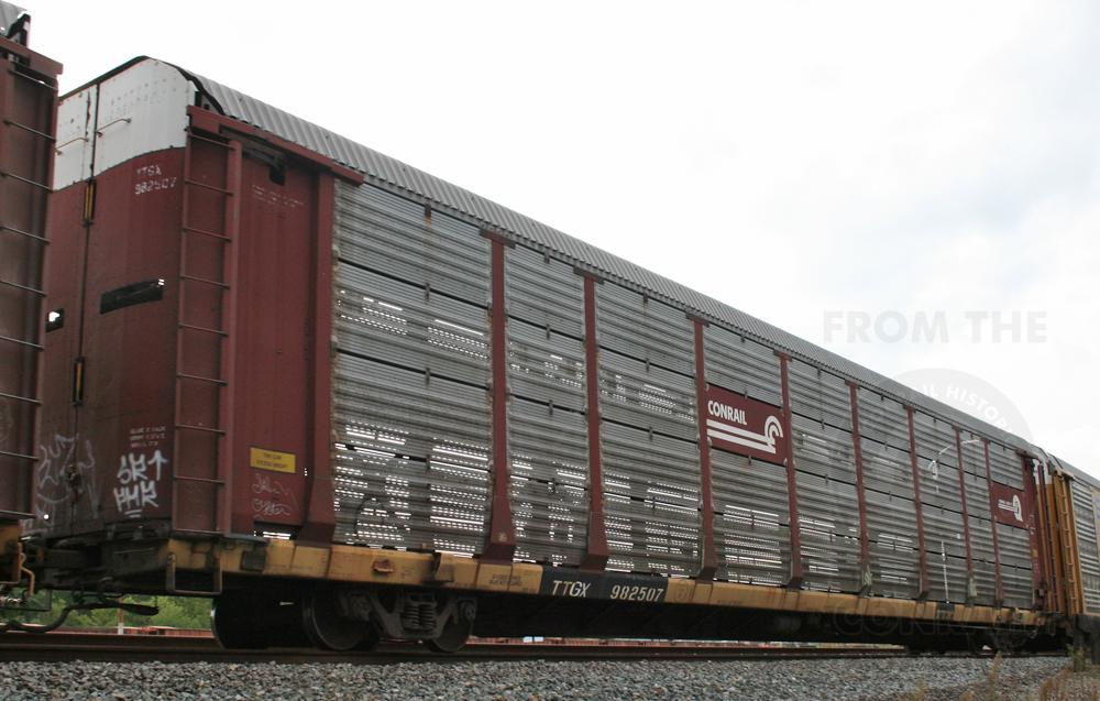 Previous Next Rack number is CR 9509, rack built by Thrall. Photo By Donnie Lee Location Details West Hump Equipment Type TTGX Bi-Levels Year 2012 Original Date 9/2/12 Collection CRHS Conrail Photo Archive Contributions