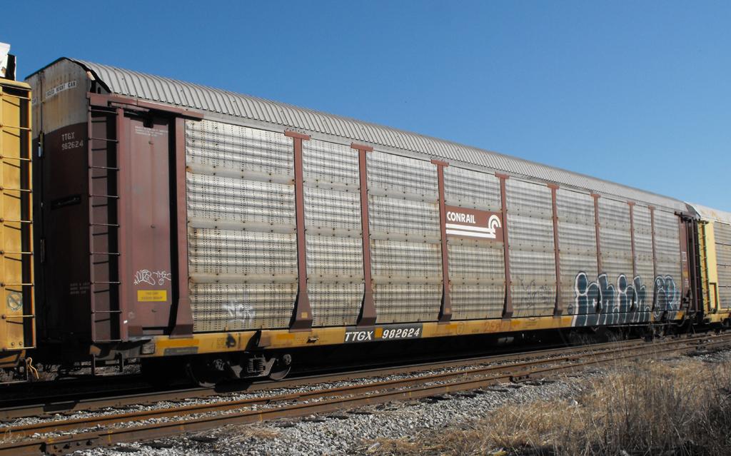 TTGX 982624 is seen in the consist of CSX Q217-07 at Perryville, MD on 3/7/12. Rack number is CR 10923, built 9-97 and is now owned by CSX.