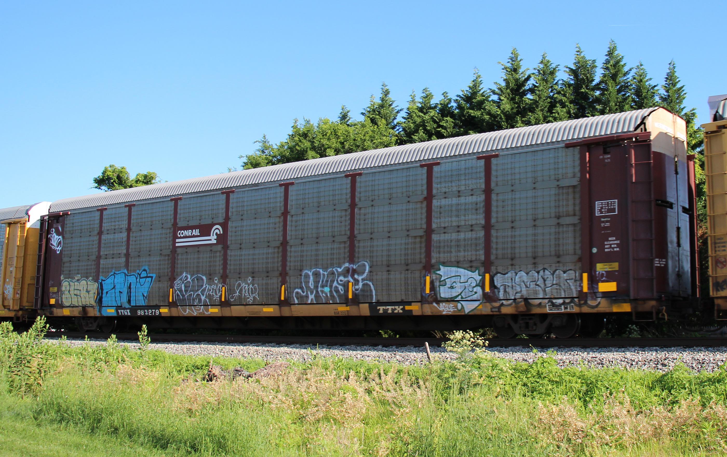 TTGX 983279 is seen in the consist of CSX Q216-09 at Newark, DE on 6/12/18. Rack number is CR 10949, built 10-97, and is now owned by CSX.