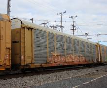 TTGX 990310 is seen in the consist of CSX M217-14 at Newark, DE on 12/14/24. Rack number is CR 9700 and wasbuilt 9-93 as a CR ML2L class rack. Itwas then rebuilt and repainted CSX in 11-14.