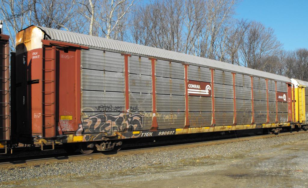 TTGX 990607 is seen on D757-17 at Feltonville PA on 2/17/12. Rack number is CR 9936 and is now owned by CSX.