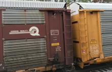 Previous Next Detail of TTGX 990776 (CR rack 10253) rolling NB through College Park, GA on February 11, 2018. Photo By Alan Page Equipment Type TTGX Bi-Levels Conrail Number 10253 Year 2018 Original Date 2/11/18 Collection CRHS Conrail Photo Archive Contributions