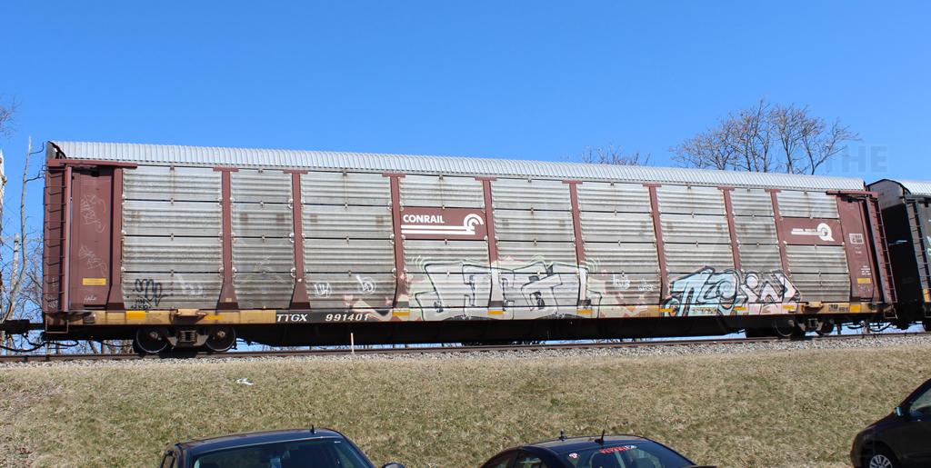 TTGX 991401 is seen in the consist of CSX Q217-23 at Newark, DE on 3/23/15. Rack number is CR 10324, built 1-94 and is now owned by CSX.