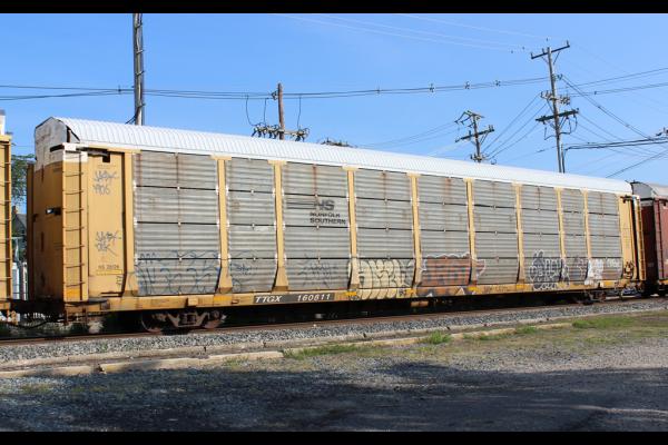 TTGX 991415 is seen in the consist of CSX Q276-11 at Saint Denis, MD on 3/13/15. Rack number is CR 10177, built 9-94 and is now owned by CSX.