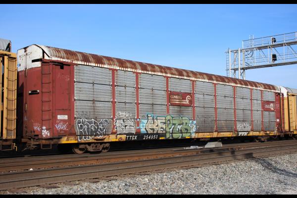 TTGX 991609 is seen in the consist of CSX L277-15 at Wilmington, DE on 12/15/18. Rack number is CR 10017, built 3-94 and is now owned by NS.