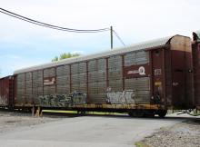 TTGX 991661 is seen in the consist of NS 11Z at Rockville, PA on 5/16/20. Rack number is CR 10208, built 9-94 and is now owned by CSX. Photo by Chris Carangi.