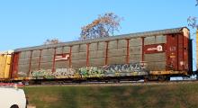 TTGX 993063 is seen in the consist of CSX Q216-08 at Newark, DE on 12/10/15. Rack number is CR 9821, built 10-93 and is now owned by NS.
