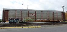 TTGX 993239 is seen in the consist of CSX Q295-10 at Elsmere, DE on 8/10/16. Rack number is CR 10943, built 9-97 and is now owned by NS.