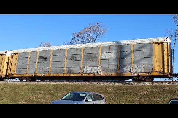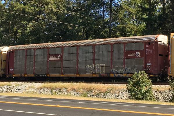TTGX 993277 is seen in the consist of CSX Q216-02 at Elsmere, DE on 10/4/20. Rack number is CR 10832, built 10-97 and is now owned by CSX.