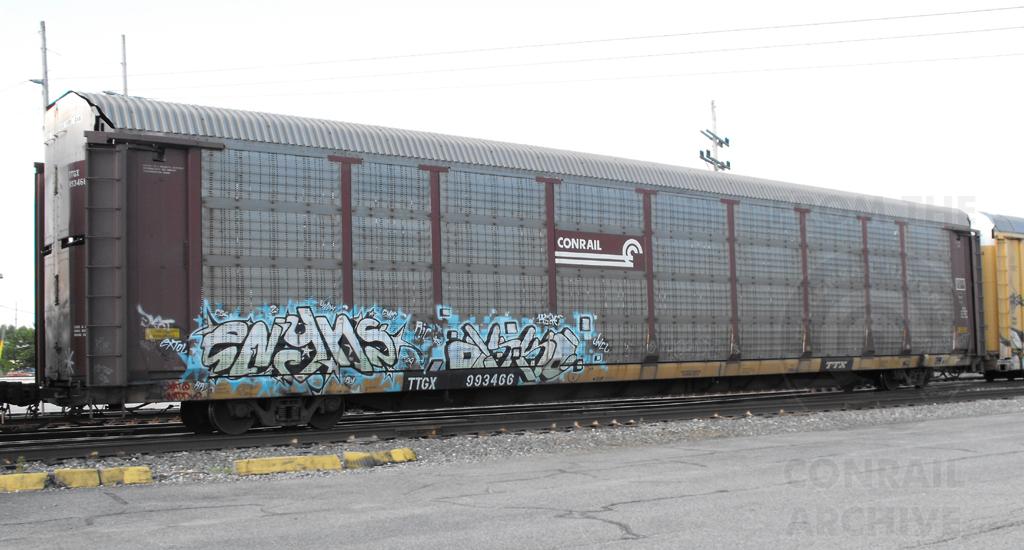 TTGX 993466 is seen on Q217-02 at Elsmere DE on 7/2/12. Rack number is CR 10933 and is now owned by CSX.