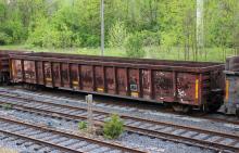 YARR 100 is seen at Steelton, PA on 5/16/20. Car is ex CR 588166/CR 565434/PC 565434 and was built 5-72 as a PC G47 class gon. Photo by Chris Carangi.