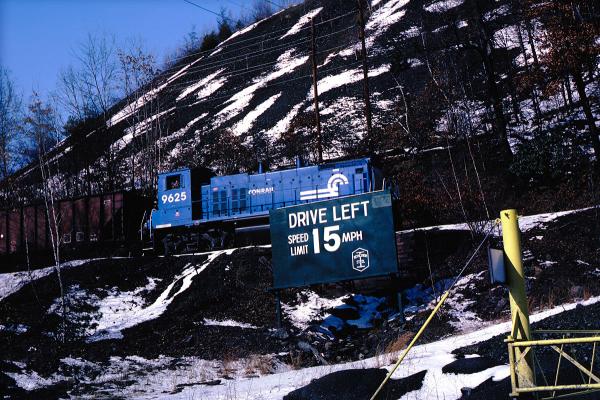 CR 18645 On the end of a coal train at Donaldson PA, 1/82