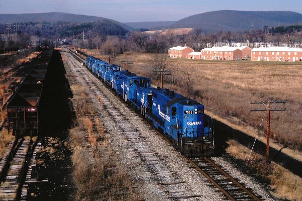 CR 7555 and a mixed group of GPs and MP15DCs at Mine Hill PA
