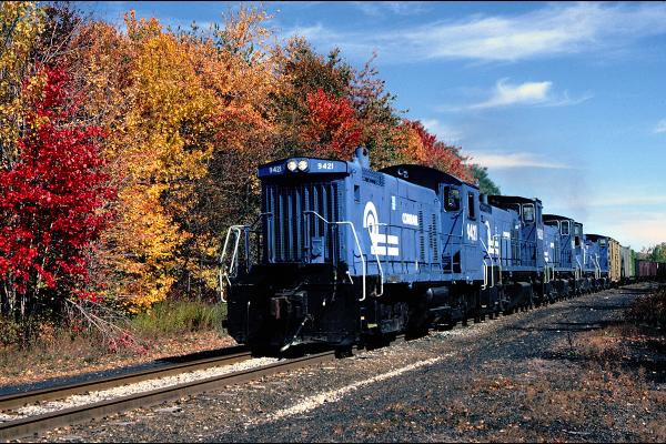 CR 9421 Leads Mixed Freight at Zehners, 10/83
