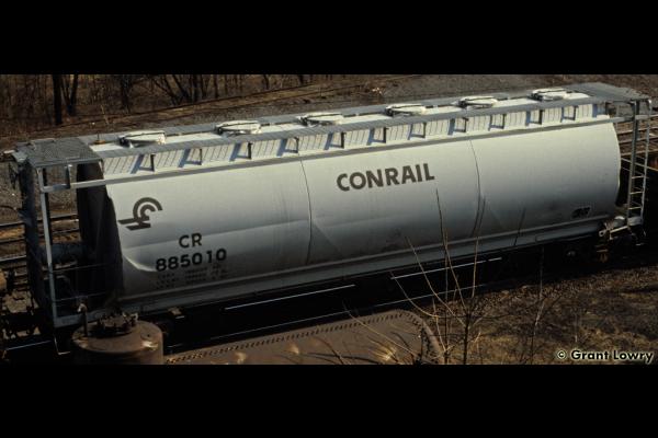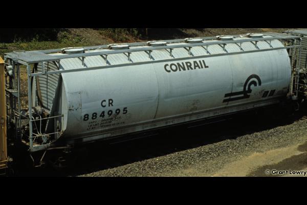 The H42A class was built by ACF in 1964 as PRR 260091-260120. 21 cars carried their PRR number to Conrail and became 884642-884664. 10 cars were renumbered into PC series 884991-885015, then becoming CR 884991-885015. Cars have a capacity of 3500 cuft.