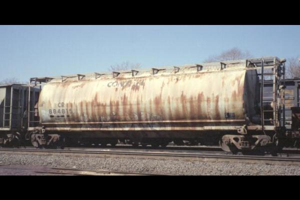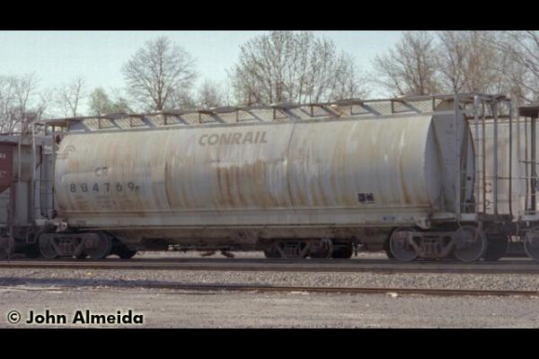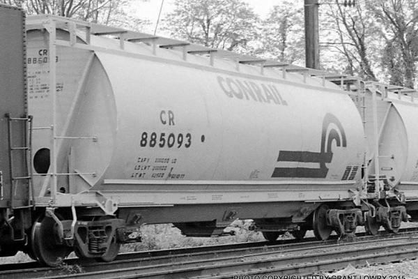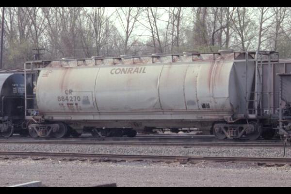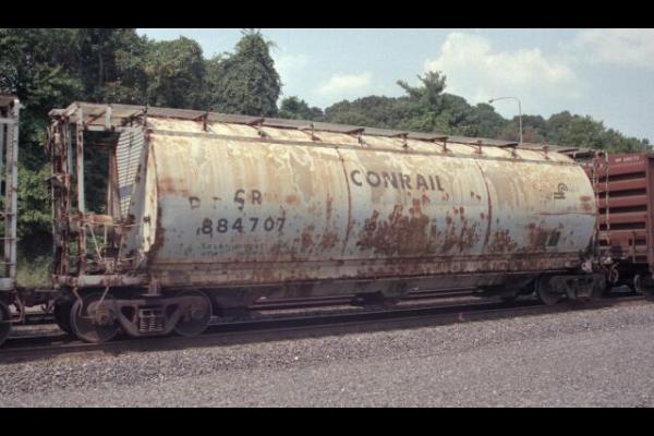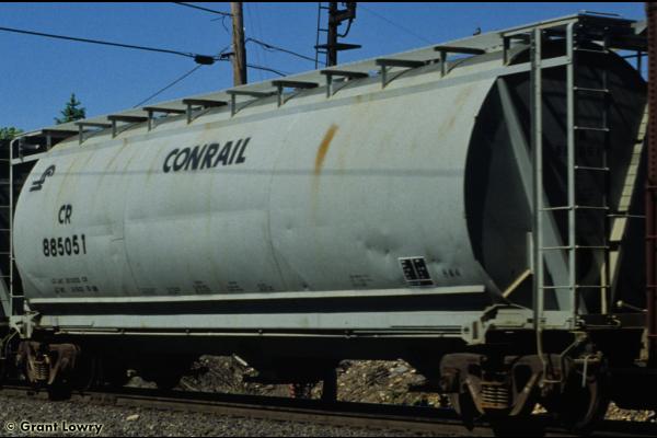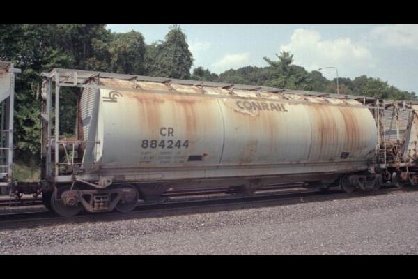 The H44 class of covered hoppers were built by ACF between Aug-Sept 1964 as PRR 260121-260410. 170 cars carried their PRR number to Conrail and were numbered into the CR 884665-884843 series. The 109 cars that had been renumbed to PC 885019-885304 became CR 885019-885304. PRR 260397 and PC 885237 were never renumber to Conrail and lasted well into the Conrail era. Cars are rated at 100 tons and have 3700 cuft capacity.