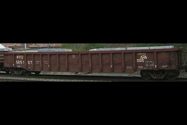 The G47's were builtas PC 564950-565449 & 580100-581099by Fruehaufduring 1971 & 1972. CR 564950-565449 ex PC 564950-565449 were built with wood floors while CR 580100-581099 ex PC 580100-581099 were built with steel floors.150 G47's were rebodied and reclassed as G52N's.190 cars originally built with wood floors were rebuilt with steel floors and renumbered CR 581100-581199 & CR 585100-585189.Even more cars wererenumbered, this timeinto the 600000 series for steel coil loading only.