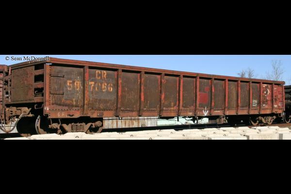 Class G52M (CR series 587000-587249) were rebodied from class GE52H (EL series 44100-44599) gondolas by the Hollidaysburg, PA car shops in 1992.