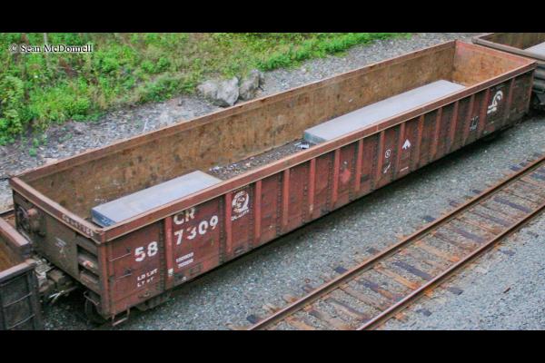 Class G52Q (CR series 587300-587519) was rebodied by the Hollidaysburg, PA car shops in 1992 from Class 120G gondolas (NYC 720000-720449 series).