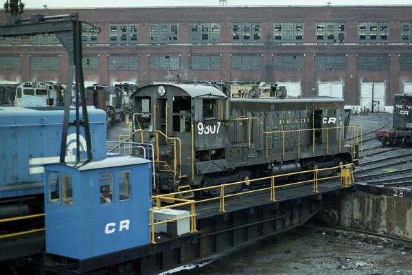 CR 2970, 2707 and SP SD45T-2 931 in Port Richmond Yard, Philadelphia. April 15, 1977