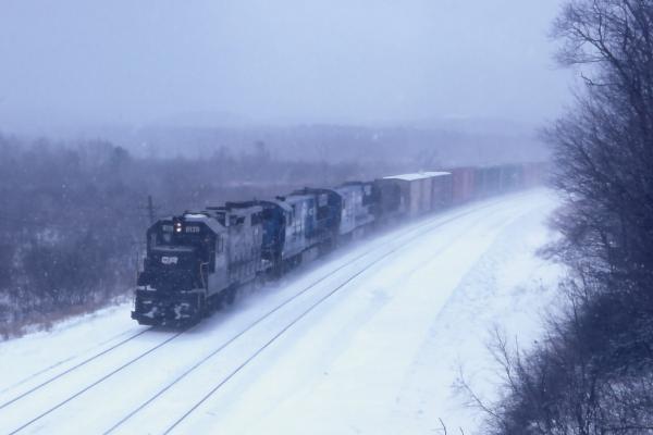 CR 8145 leads a train of work equipment to Reading PA for storage in November 1987