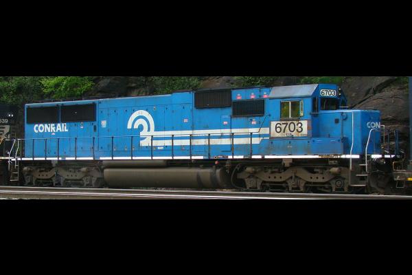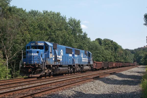 NS 6704 (Conrail 6846) leads NS 145 at Conneaut Ohio