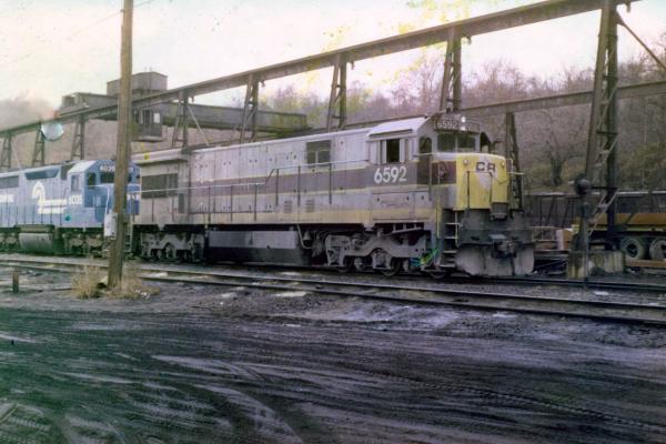 CR 6592 and 6035 rest in the engine service area at Bethlehem, PA.