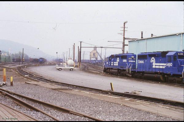CR 6479 leads a westbound Conrail manifest downgrade at Gallitzin, PA on Sept. 8, 1984.