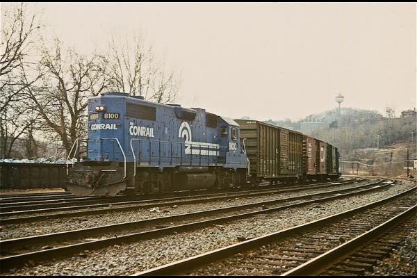 CR 8142 leads a Chessie Detour train into Eastside Yard from the Greys Ferry Ave. OHB, 11/9/1985