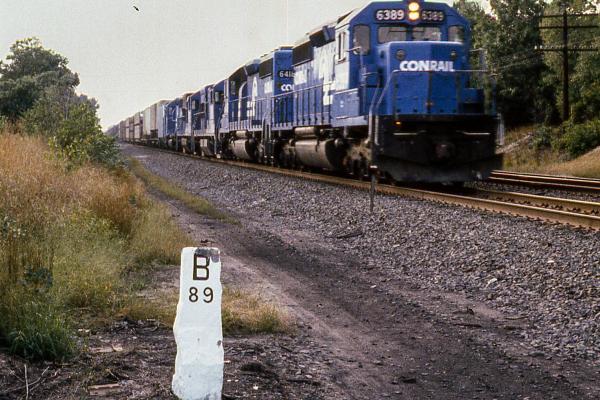 CR 6421 Leads CSX Z409 (Conrail SEPY) at Muirkirk MD, 2/93