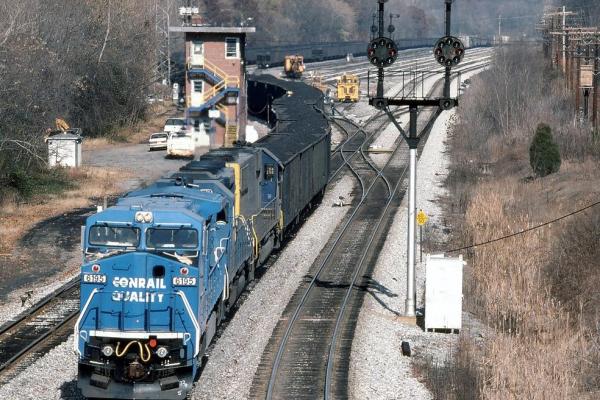 CR 6191 Leads a Triple Crown Roadrailer Train Through Birmingham PA, 5/94