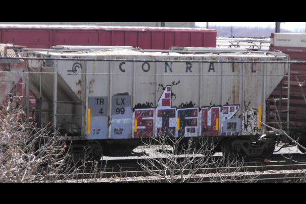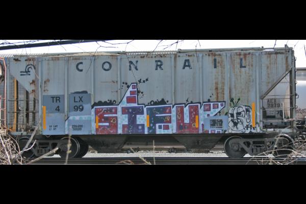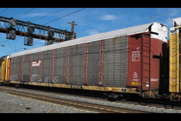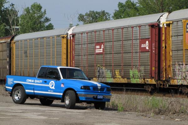 Rodney Woodard's "Spirit of the Conrailer" poses with a Conrail heritage autorack