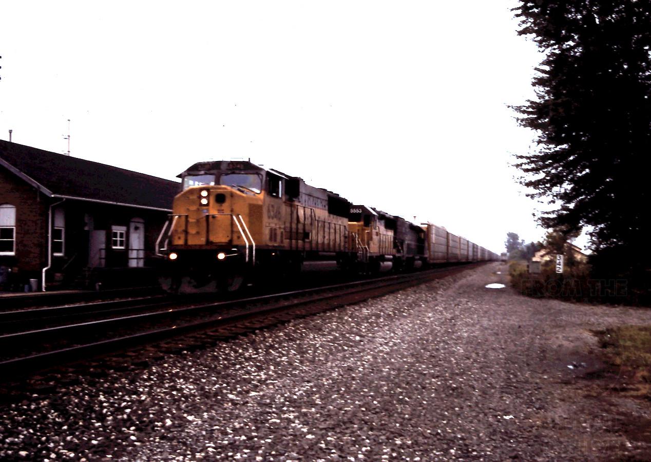 Previous Next UP 6346, 5553, and a SP EMD leads NPSE-2 at Bryan, OH on August 22, 1998 Photo By Chris Howe Year 1998 Original Date 8/22/98 Location City Bryan OH Subject(s) Foreign Power on Conrail Collection CRHS Conrail Photo Archive Contributions