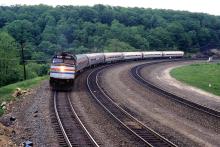 AMTK 387 EMD F40PHR Pittsburgh Line Allegheny Twp PA Bennington Curve with AMTK train 43