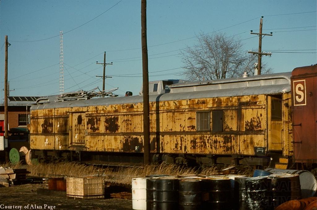 Former PRR MP-54 Combine 495209 converted to Amtrak MOW use at Morrisville in March, 1977.