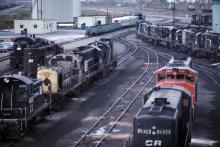 Previous Next Photo By Don Oltmann Year 1976 Original Date 10/8/76 Location City Selkirk NY Equipment Type EMD GP35 EMD SW1 GE U30B Alco RS32 Conrail Number 2834 8429 2035 2316 Predecessor Paint Scheme PC Collection CRHS Conrail Photo Archive Contributions