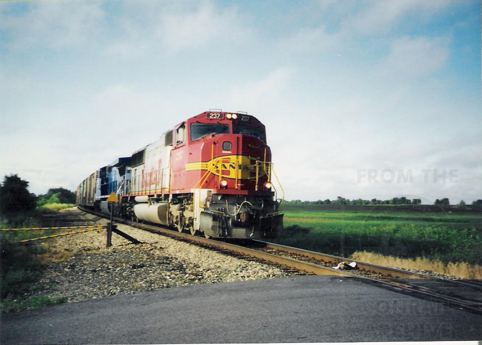 Previous Next ATSF 237 and a LMS GE leads train SFEL west of Lowell, IN on July 30, 1996 Photo By Chris Howe Year 1996 Original Date 7/30/96 Subject(s) Foreign Power on Conrail Collection CRHS Conrail Photo Archive Contributions