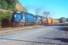 B&M GP40 333 (CR 3254) leads B&M GP40-2 309 and GP39-2 359 (D&H 7619) on D&H PYME-9 on the Buffalo Line at Rockville, PA