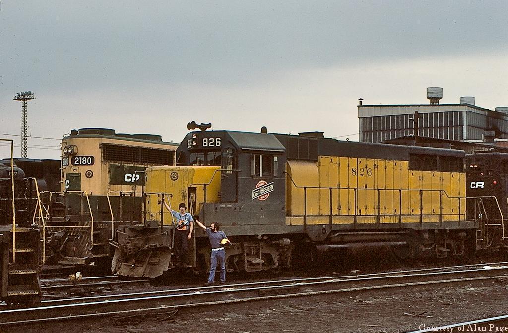 Leased CNW GP35 826 mixed with ex-RDG GP35 2180 and other CR power at Enola in May, 1977.