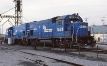 CR 1653 and CR 1650 are seen at the engine facility in Lewistown, PA on 4/28/1985.