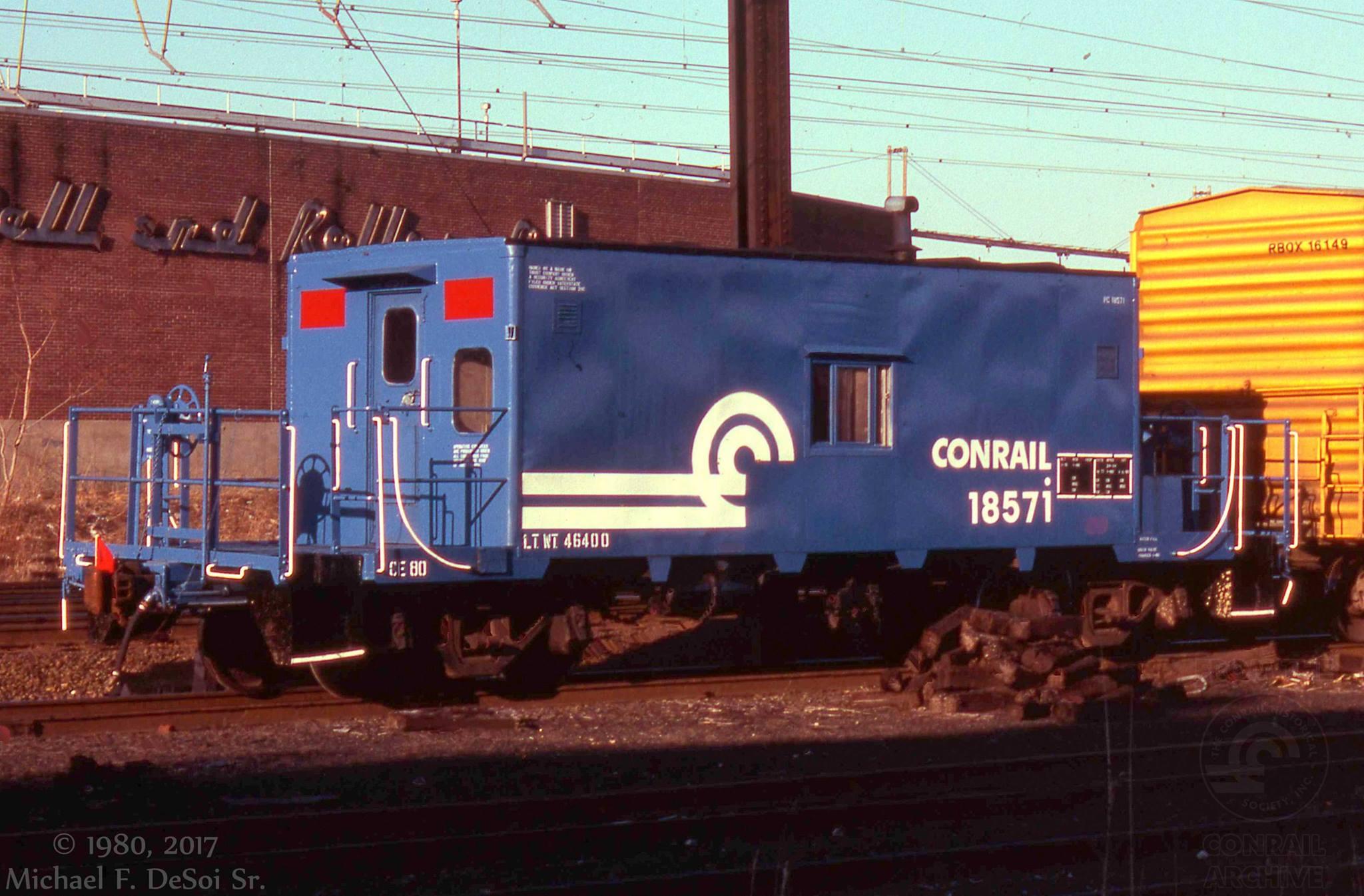 18571 on an eastbound on the "0" track at Water St & The NEC in Philadelphia, PA. March 9, 1980.