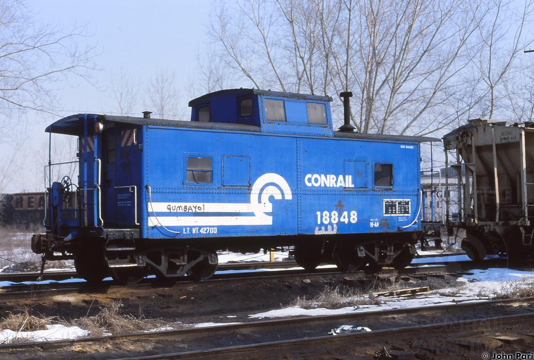 Former RDG 94050 is seen at Cornwall Jct. near Lebanon, PA on 2/21/1983. Note the Reading and white Lehigh Valley 50' boxcars visible in the background.