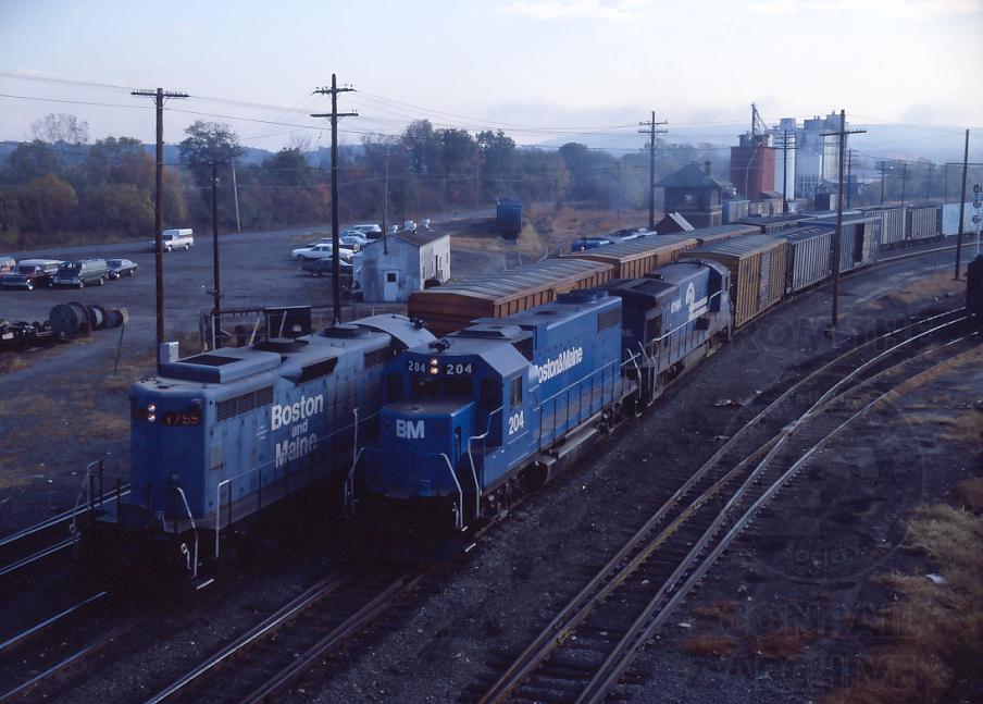 A few days later, on Oct. 19, 1982, the 204 and CR 1994 are back at East Deerfield yard with a POSP. B&M GP18 1755 is the west end switcher this day.