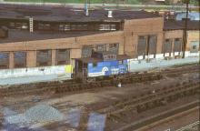 Conrail class N5B caboose 22856 is seen at Conway Yard in 1983, shot from inside the yard tower.
