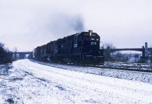 A dusting of snow is on the ground as OISE-3 leans into the elevation as it accelerates north