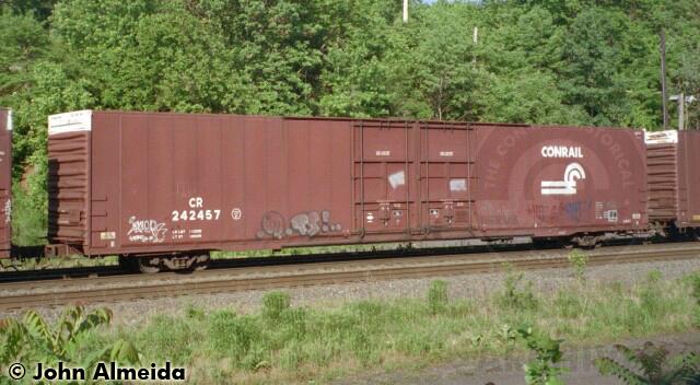 Conrail box car Class X60T CR 242457 May 1996 ORER description: Box, steel, 20" travel cushion underframe, Plate F, AAR car type code A806, mechanical designation XP. Car is ex NYC 67460.