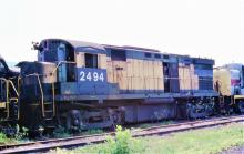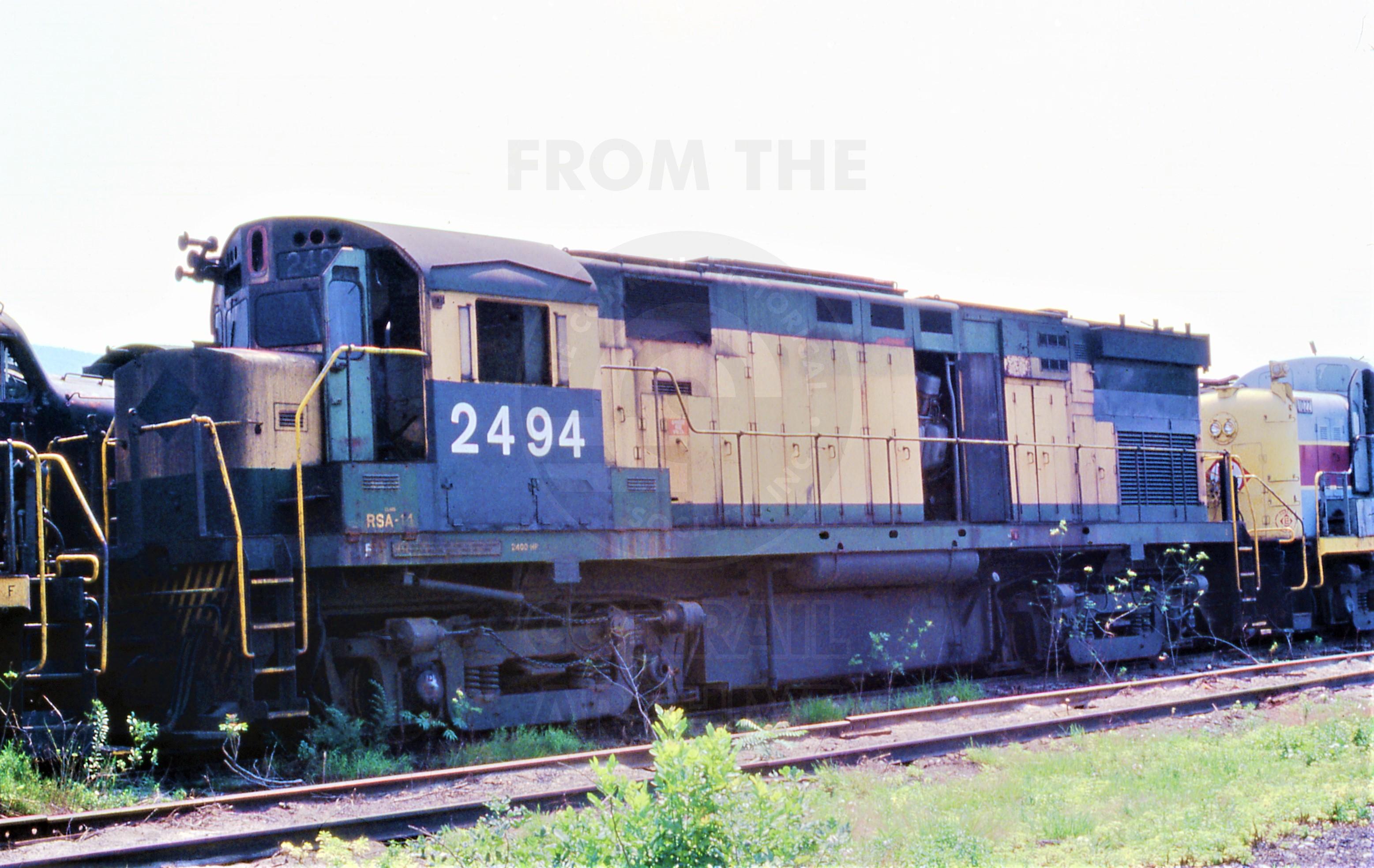 Conrail. Ex- Reading C424 #2494 (RSA-11) on Altoona, PA scrap line. July 18, 1977. The scrap line was a sad place for Alco fans!