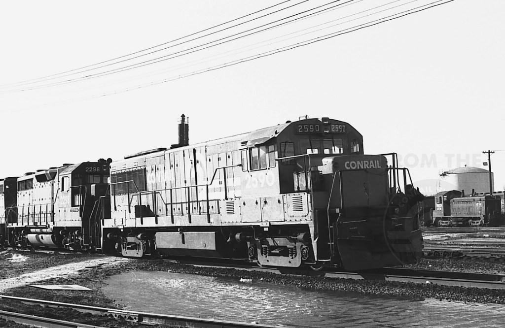 The Hostlers ready a group of engines, including CR 2590, for there next trip out at Elkhart Yard engine terminal on March 13, 1982. Note the ex PC EMD switcher in the background on the right side of the photo. Kevin Nelson photo with permission.